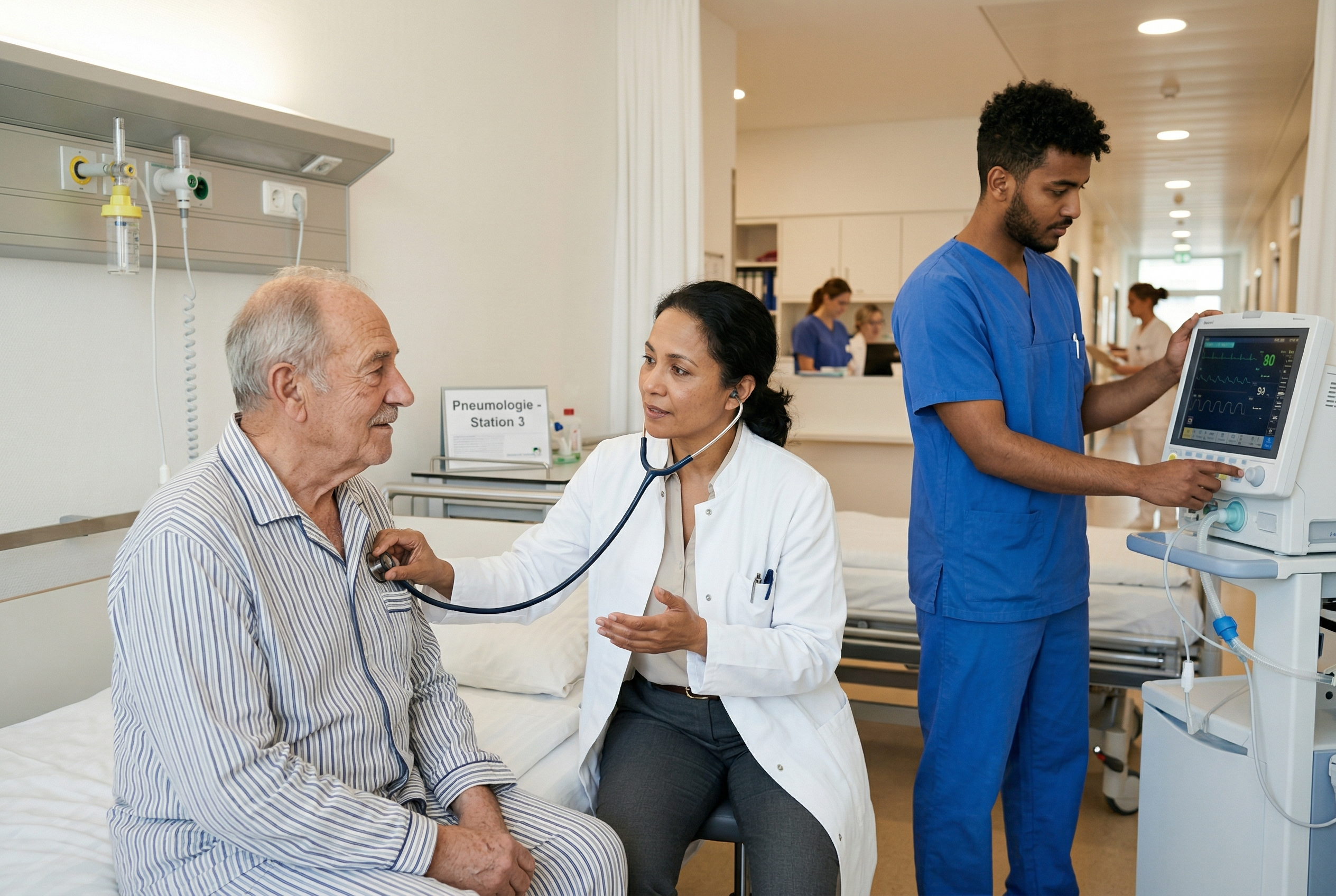 Die Arbeit in unserer pneumologischen Klinik ist vielseitig und anspruchsvoll. Wir bieten ein modernes Arbeitsumfeld mit innovativer Technik und interdisziplinärer Zusammenarbeit. Die kontinuierliche Weiterbildung unserer Mitarbeitenden ist ein zentraler Bestandteil unseres Konzepts.