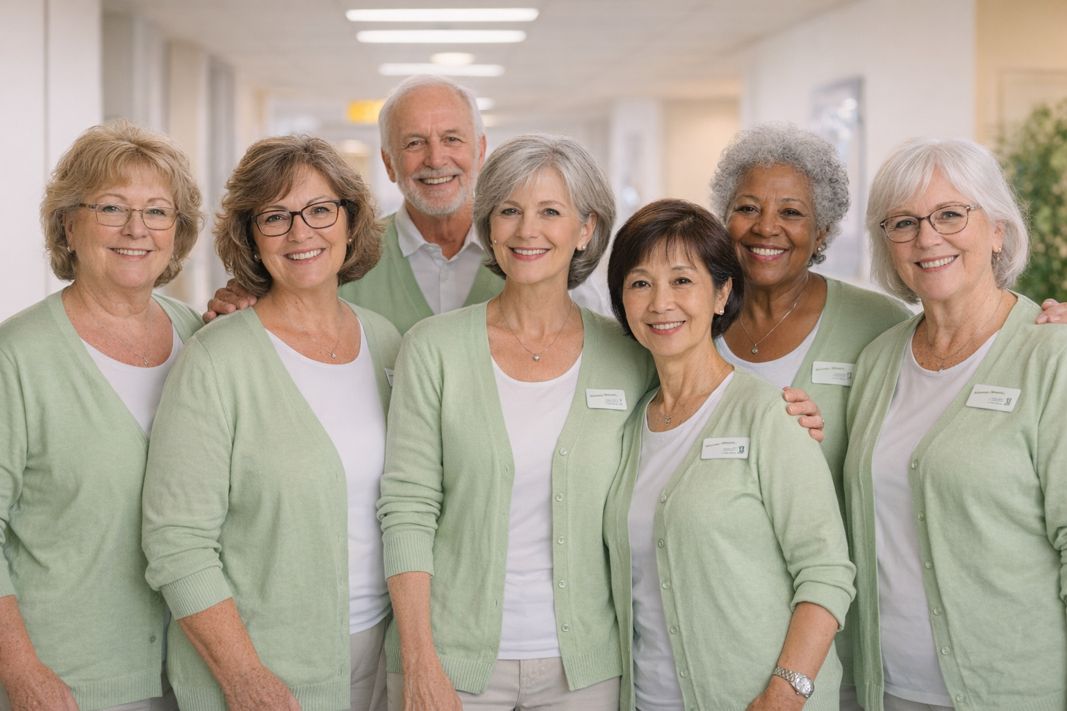 Das Team der Grünen Damen besteht aus engagierten Ehrenamtlichen, die ihre Zeit und Aufmerksamkeit den Patientinnen und Patienten widmen. Gemeinsam sorgen sie für eine persönliche und unterstützende Atmosphäre im Klinikum.